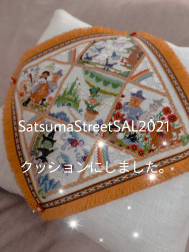 ステッチが終了し、しばらく経った12月、やっとクッションに仕立てて完成させました。