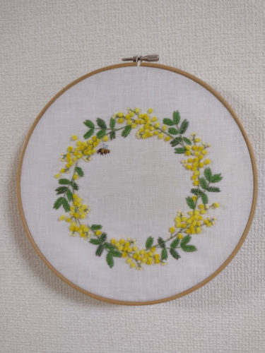 ステッチイデーvol.35付録カレンダーの、ミモザの刺しゅう図案に挑戦しました。